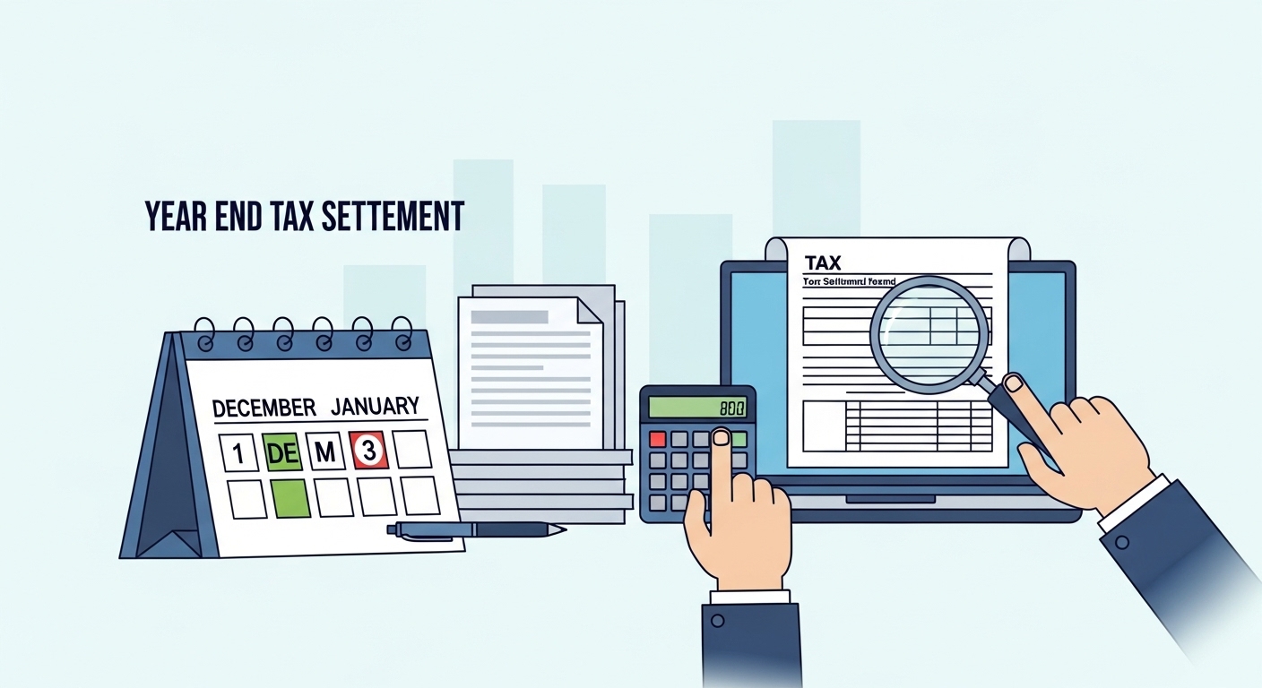 대부분의 기업은 2월 급여명세서에 연말정산 환급금 또는 추가 납부 금액을 함께 표시합니다.